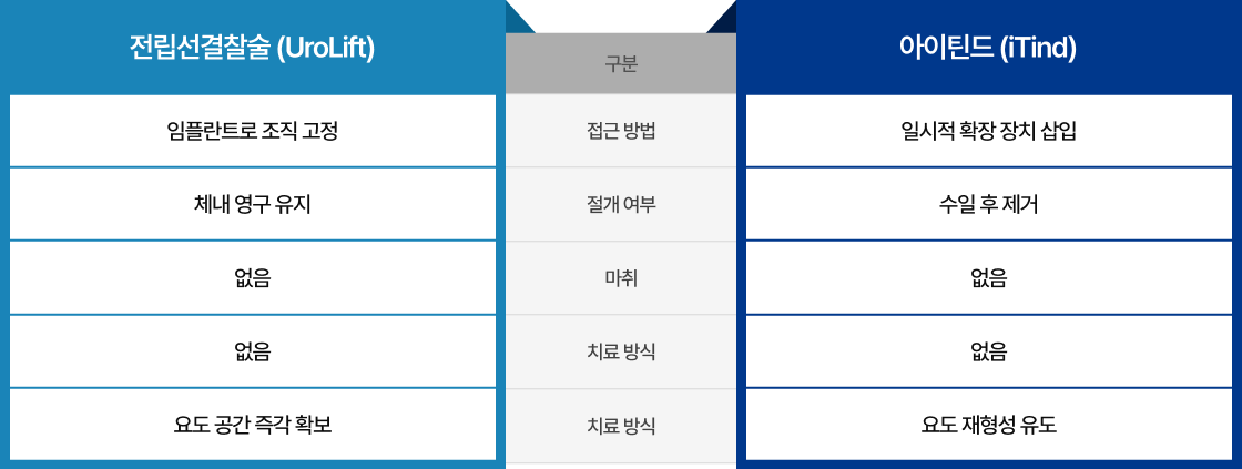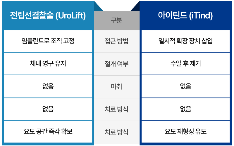 두 치료 모두 전립선 조직을 절제하지 않는 비수술적 접근입니다.