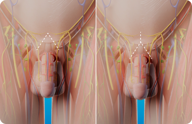 미세한 절개를 통해 음경을 지지하고 있는 인대 일부를 조정하여