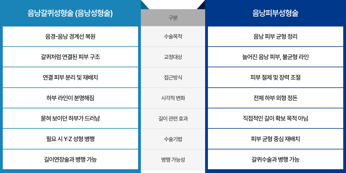 음낭갈퀴 교정은 피부 연결 구조와 장력 상태에 따라 수술 방법이 달라집니다.